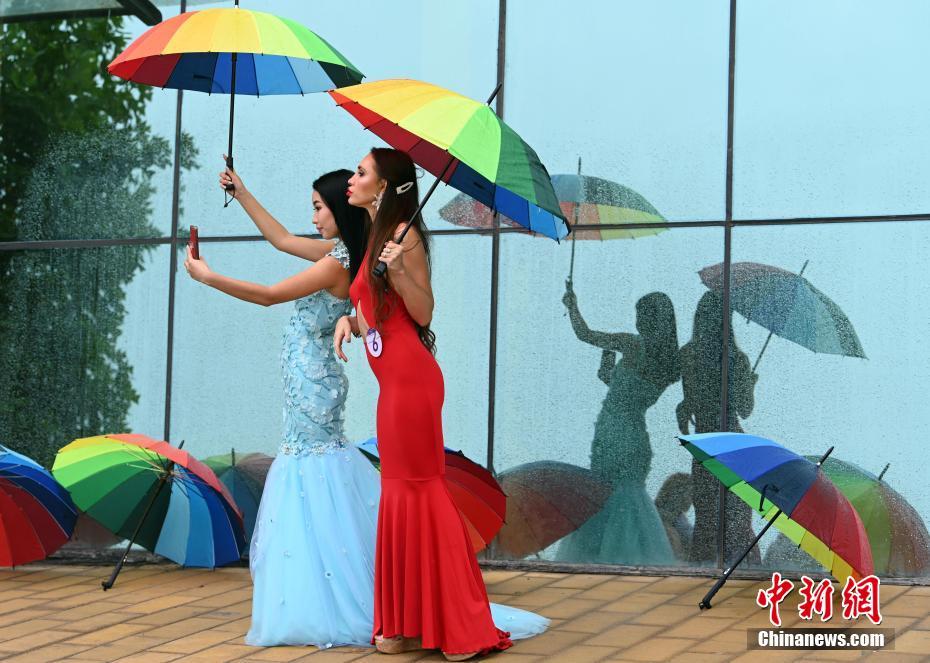9月9日,来自全球33个国家和地区的43位出席“2019丝路环球旅游小姐世界总决赛”的参赛选手在宁夏中卫采风拍摄,体验当地特色风情,感受中国文化。中新社记者 毛建军 摄