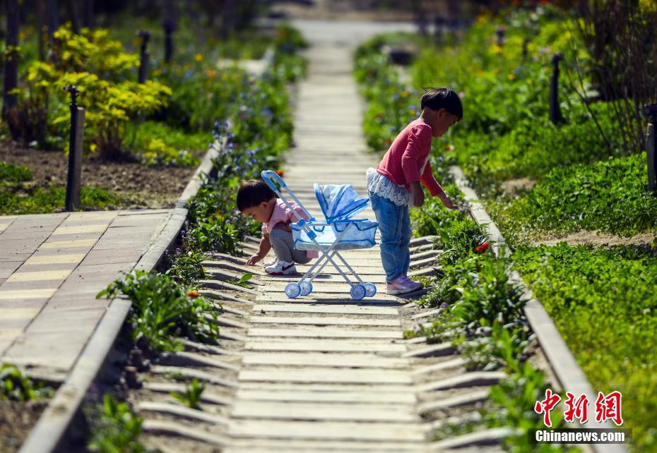 9月9日,新疆乌鲁木齐市高新区(新市区)京疆路铁路主题公园,小朋友在铁道上玩耍。这是该市首个以铁路为主题的公园,1.7公里的铁路纵贯公园,铁轨被改造成健身步道,两侧是绿地、花圃、小广场,为沿线20多个居民小区,约10万人提供公共绿地,并通过慢行系统联通周边居住用地,满足市民游憩娱乐等公共服务需求。据介绍,该公园所利用的铁路为建成于1964年的六道湾铁路,为运煤专线。2007年六道湾煤矿关闭,此段铁路废弃。中新社记者 刘新 摄
