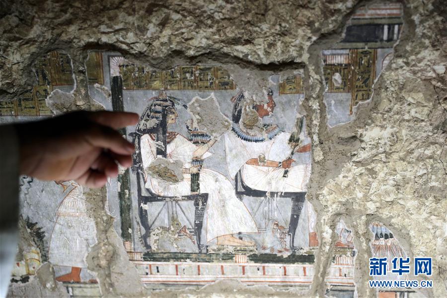 这是9月8日在埃及卢克索一座古墓内拍摄的壁画。新华社发(艾哈迈德·戈马摄)