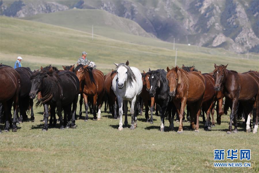 9月10日,山丹马场的牧马人在照看马群。新华社发(杜哲宇 摄)