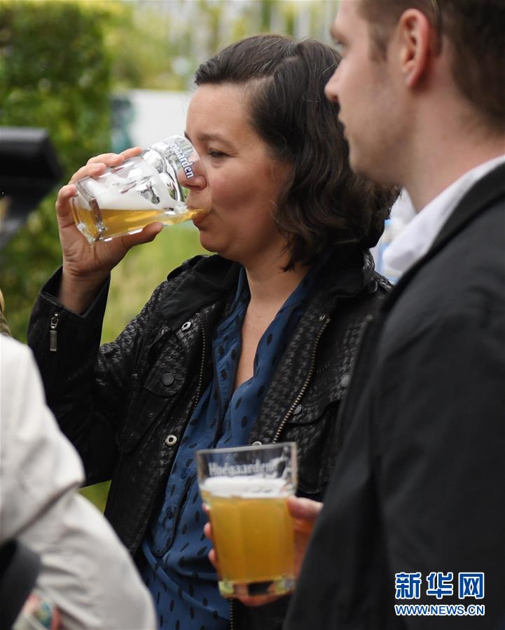 9月10日,游客在北京世园会比利时展园品尝比利时特色啤酒。 当日, 2019年中国北京世界园艺博览会“比利时国家日”活动在北京世园会园区举行。 新华社记者 张晨霖 摄