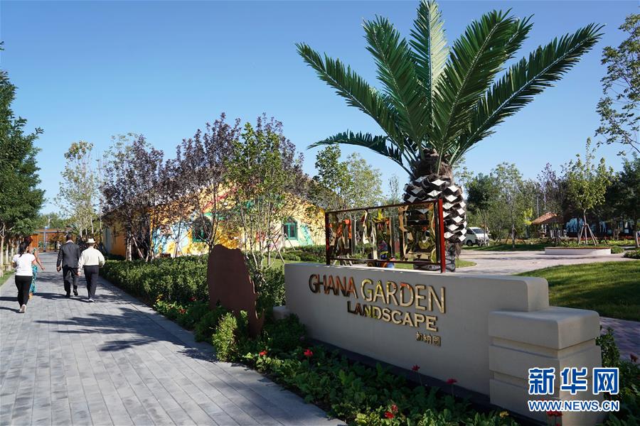 9月18日,参观者在北京世园会加纳展园内参观。 当日,2019年中国北京世界园艺博览会“加纳国家日”活动在北京世园会园区举行。 新华社记者 鞠焕宗 摄