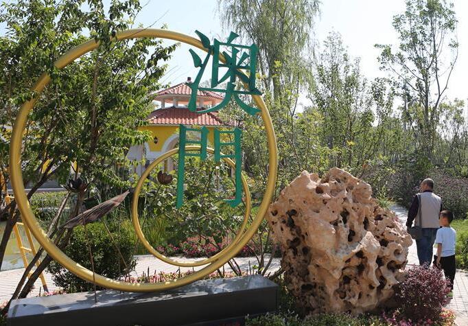 9月22日,游客在北京世园会澳门园参观。