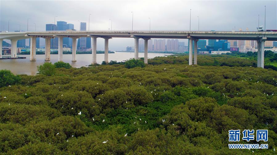 澳门莲花大桥红树林(2019年5月24日无人机拍摄)。新华社发(梁建华摄)