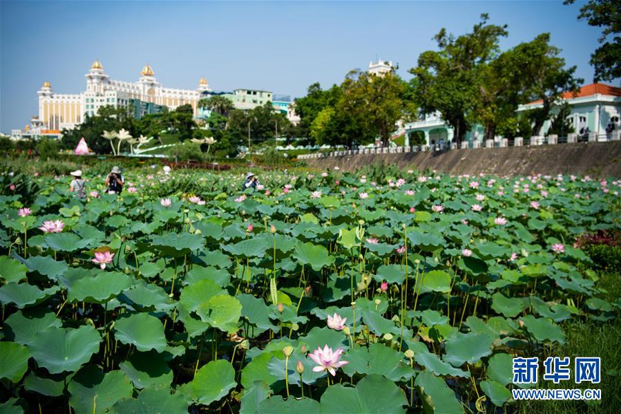 澳门龙环葡韵的荷花(2018月6月10日摄)。新华社记者 张金加 摄