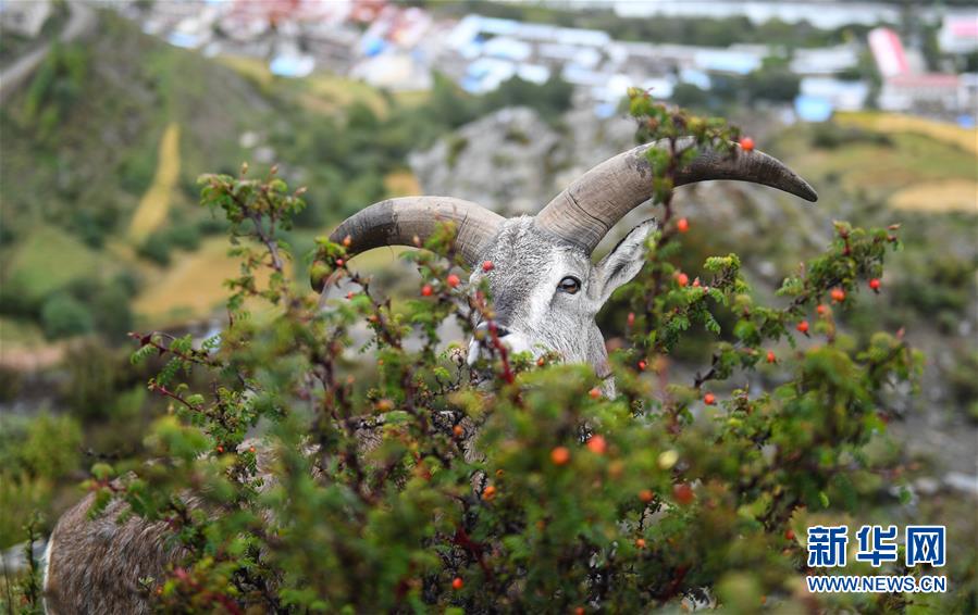 一只岩羊在西藏山南市洛扎县色乡海拔4000米左右的盘山路边,悠闲地吃着野果青草(9月22日摄)。 在西藏山南市洛扎县色乡海拔4000米左右的盘山路上,一群岩羊悠闲地吃着野果青草,完全不介意来往的车辆、行人和近在咫尺的镜头。 岩羊是国家二级保护动物。近年来,随着西藏生态保护力度加大,岩羊数量不断增加。 新华社记者 晋美多吉 摄
