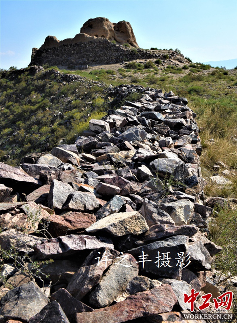 2019年9月23日,走进明长城宁夏中卫段,这里在中国古代是北部边防前沿,素有“关中屏障,河陇咽喉”之称,战略地位非常重要。秦、汉、隋、明四个朝代都曾在这里修筑长城,明称“边墙”。在一些高山峡谷处,尚留有石块垒砌的长城遗迹,多建于明代,时称“西长城”。这些长城遗址,再现了中卫古代政治、经济、文化,尤其是所处的军事地位。工人日报-中工网许之丰摄影报道