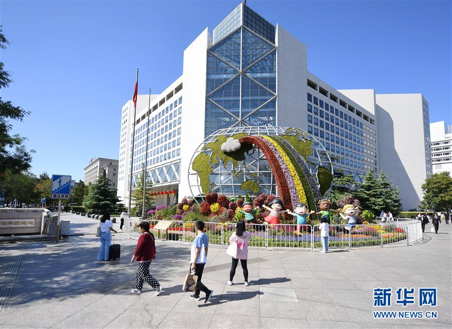 9月23日拍摄的位于西单西北角的“命运共同体”花坛。新华社记者 张晨霖 摄