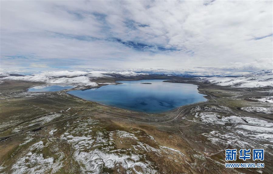 9月24日无人机拍摄的拿日雍错。 拿日雍错位于西藏山南市错那县北部,海拔4900米,像蓝宝石般镶嵌在雪山草原之间。 新华社记者 晋美多吉 摄