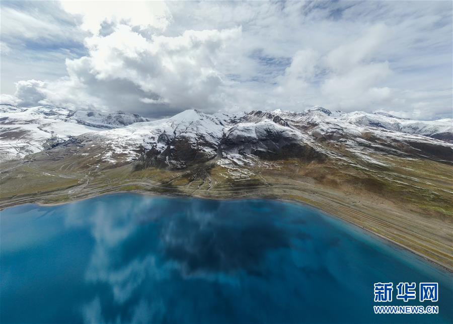 9月24日无人机拍摄的拿日雍错。 拿日雍错位于西藏山南市错那县北部,海拔4900米,像蓝宝石般镶嵌在雪山草原之间。 新华社记者 晋美多吉 摄