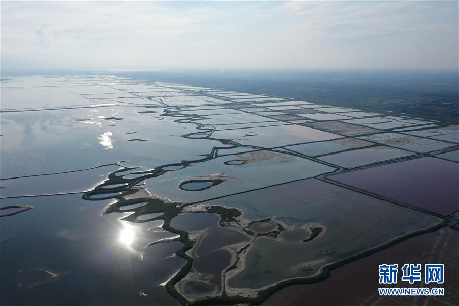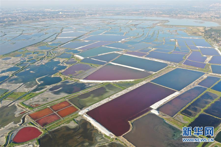 9月23日无人机拍摄的山西运城盐湖。 金秋时节,从空中俯瞰位于山西省运城市的盐湖,五彩斑斓,景色如画。 新华社记者 杨晨光 摄