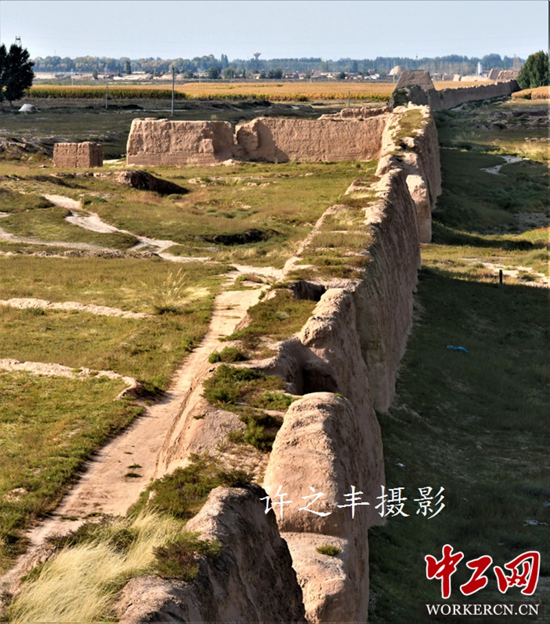 2019年9月24日,沿着明长城西行,走进甘肃武威古城(古称凉州),至今已有2000多年的历史,这里是丝绸之路由东向西进入河西走廊后的第一重镇。明万历年间,朝廷为了巩固和加强武威这一军事战略要地,防御外来势力的进攻,在汉长城的基础上增修了百余里坚固的“边墙”。现如今武威境内明长城大部分保存完好,可谓河西走廊上的一大奇观。工人日报-中工网许之丰摄影报道
