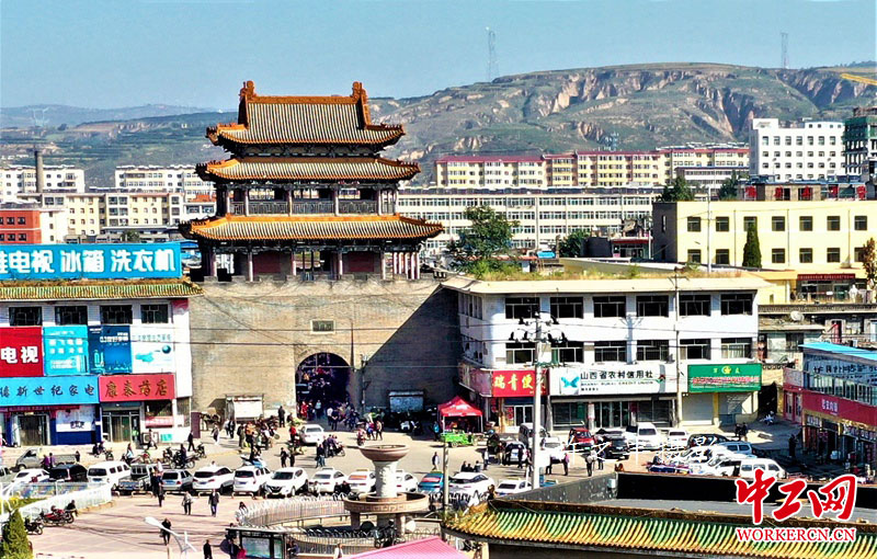 2019年9月16日,空中看明长城角下重镇偏头关。位于山西省偏关县,偏头关与宁武关、雁门关合称中华三关,是明代长城外三关之首。它东连丫角山,西濒黄河,因东仰西伏,故名偏头。现存关城为明洪武十三年(1390年)所建。在偏头关东南一公里,有凌霄塔,系明代建筑。偏头关历史悠久,地处黄河入晋南流之转弯处,为历代兵家争夺重地。工人日报-中工网许之丰摄影报道