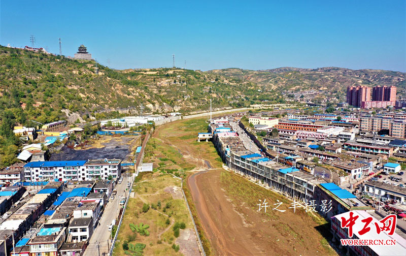 2019年9月16日,空中看明长城角下重镇偏头关。位于山西省偏关县,偏头关与宁武关、雁门关合称中华三关,是明代长城外三关之首。它东连丫角山,西濒黄河,因东仰西伏,故名偏头。现存关城为明洪武十三年(1390年)所建。在偏头关东南一公里,有凌霄塔,系明代建筑。偏头关历史悠久,地处黄河入晋南流之转弯处,为历代兵家争夺重地。工人日报-中工网许之丰摄影报道
