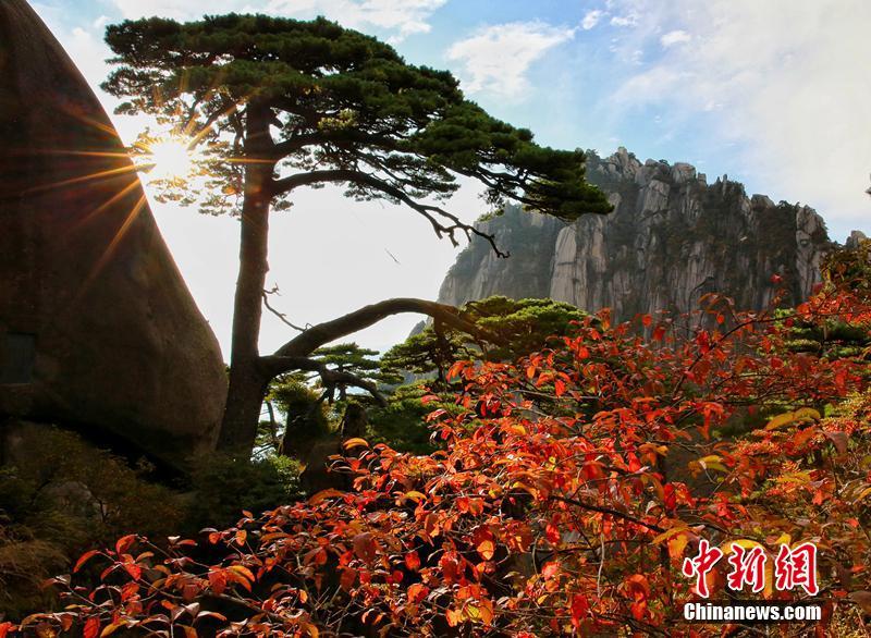 安徽黄山秋日层林浸染云海翻涌