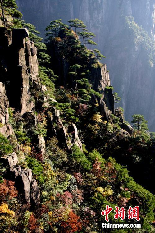 安徽黄山秋日层林浸染云海翻涌