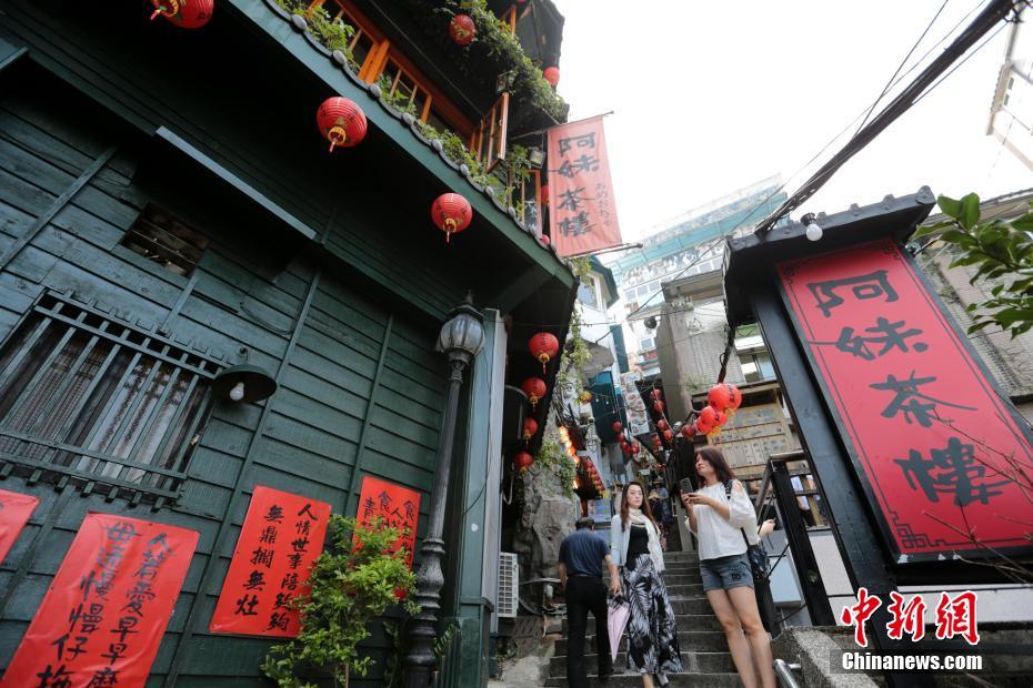 10月3日,台湾新北市瑞芳区九份的建筑风格与布局颇具特色,电影《悲情城市》便取景于此,近年九份持续成为游客喜爱之处。入秋气温仍暖,九份处处高挂红灯笼、张贴着楹联,传统意味浓厚。中新社记者 张远 摄