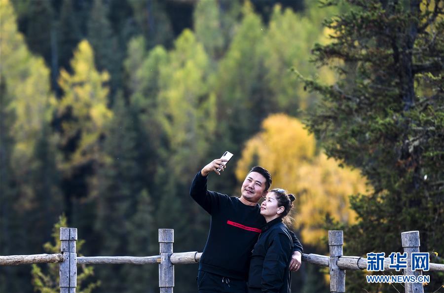 游客在新疆喀纳斯景区观光(9月25日摄)。 截至10月3日,著名的新疆喀纳斯景区年内已接待游客超过1000万人次。 新华社记者 王菲 摄