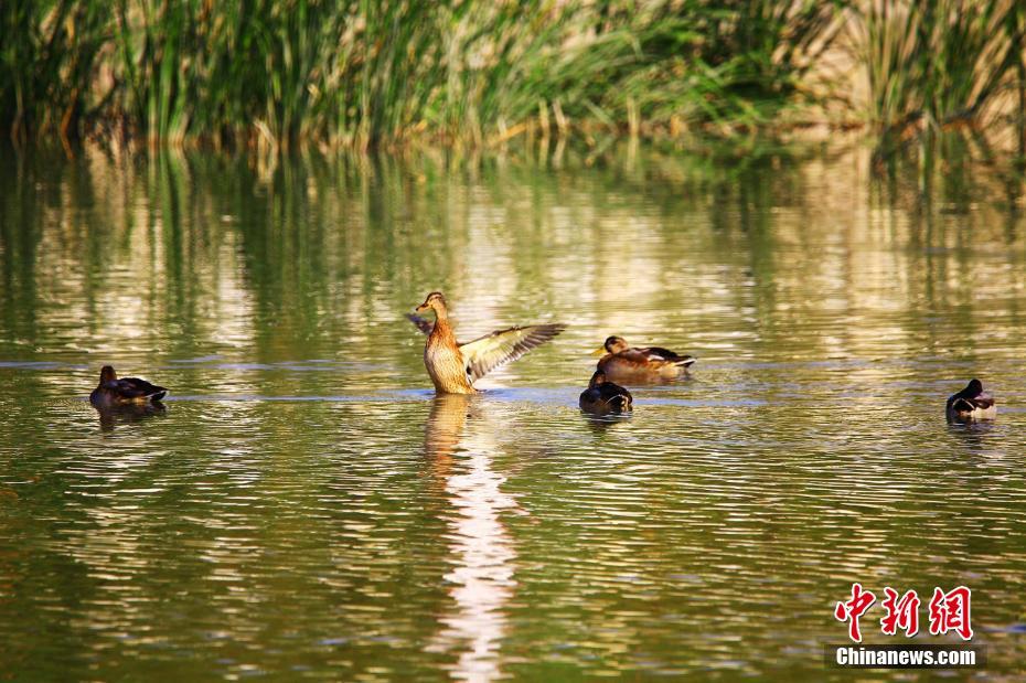 新疆托克逊县白杨河城区段日前迎来入秋后首批候鸟,形成一道靓丽的风景线。在白杨河城区段,数只大麻鸭、绿头鸭等候鸟在此停歇觅食,它们不时伸长颈部,昂头环顾四周,步履稳健,从容不迫,更有不少犹如哨兵一样站立在河道滩涂,成为一道靓丽的风景线。李靖海 摄