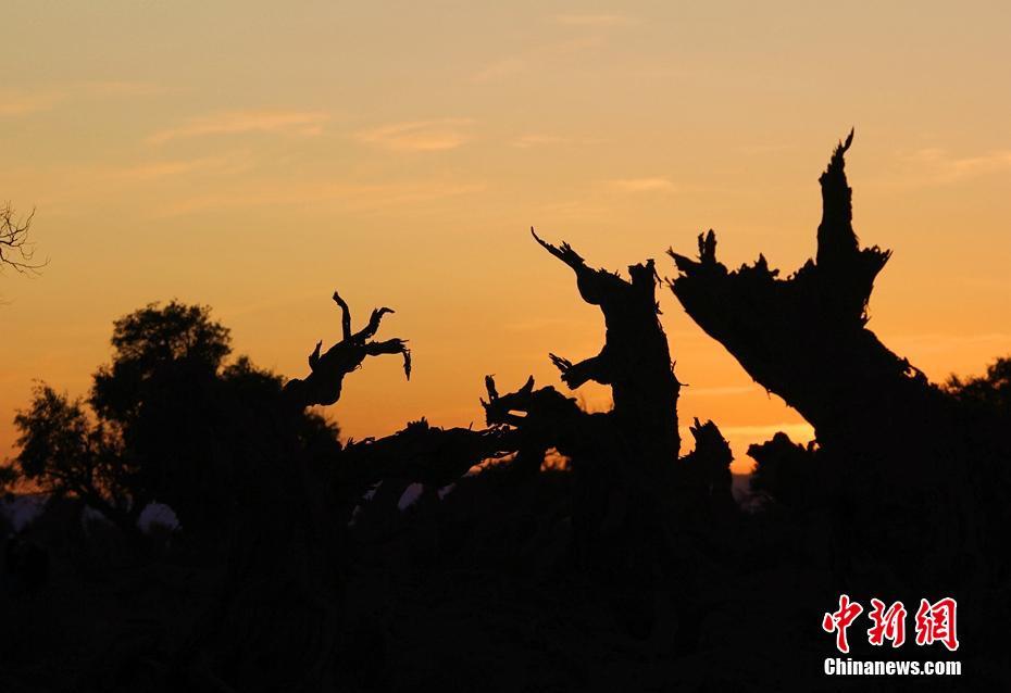每年的十月就会进入最美胡杨季,胡杨它耐寒、耐旱、耐盐碱、抗风沙,有很强的生命力。落日夕阳之下,千年沧桑在镜头前展露无遗。陶拴科 摄