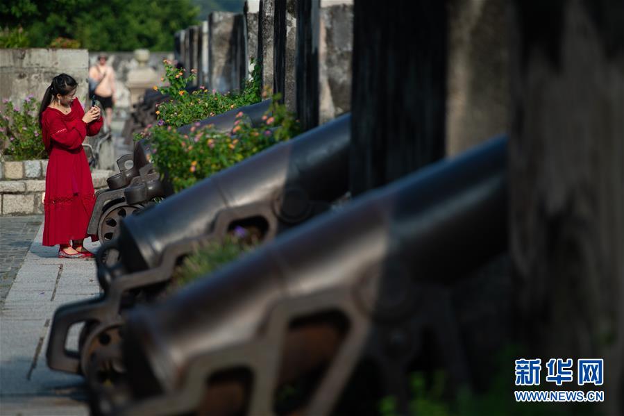10月8日,人们在澳门大炮台游览。 新华社记者 张金加 摄