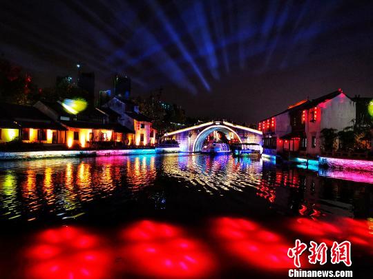 清名桥历史文化街区被彩色的灯组照得格外“优雅”。 潘部 摄