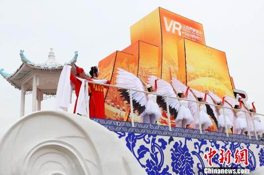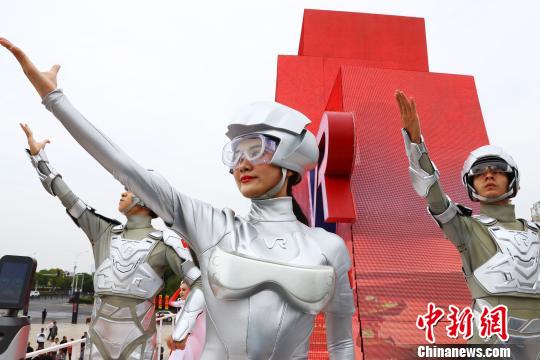 图为江西彩车上的VR标识造型表演。 刘占昆 摄