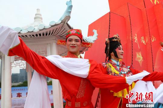 图为江西彩车上的戏曲表演。 刘占昆 摄