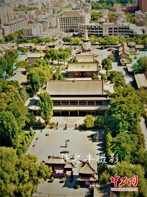 2019年9月26日,作者走进明长城角下的张掖古城。古为河西四郡之一张掖郡,取“断匈奴之臂,张中国之掖(腋)”之意。因地处甘肃河西走廊的中部,汉代与明代所修筑的长城主线均从此地经过。境内有西夏大佛寺、西来寺、土塔、镇远楼、山西会馆等古代建筑,自古素有“一湖山光,半城塔影,苇溪连片,古刹遍地”之美誉。工人日报-中工网许之丰摄影报道
