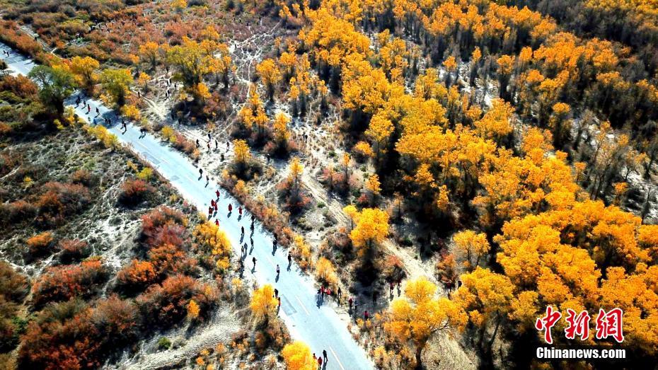 游客在新疆轮台县塔里木胡杨林公园游玩。确·胡热 摄