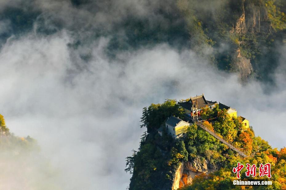 “道源圣地”崆峒山云遮雾盖 层林尽染“色域”撩人