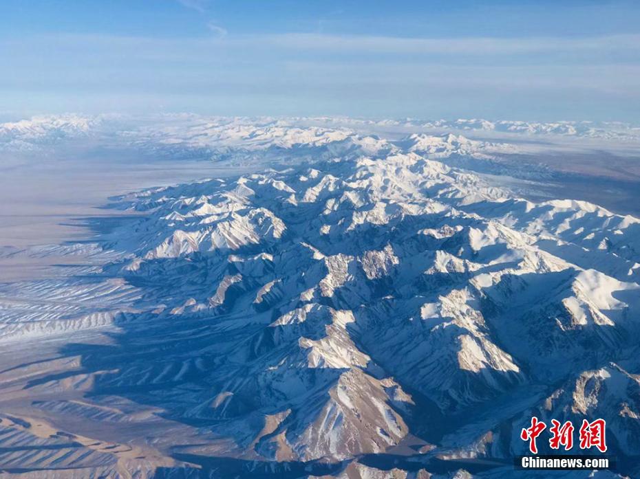 10月下旬,从高空俯瞰祁连山,其山顶白雪皑皑,如朵朵“浪花”镶嵌于大地之上。祁连山脉,位于中国青海省东北部与甘肃省西部边境,是中国境内主要山脉之一,海拔4000米以上的山峰终年积雪,雪山棱角分明,尽显豪迈“阳刚之美”。艾庆龙 摄