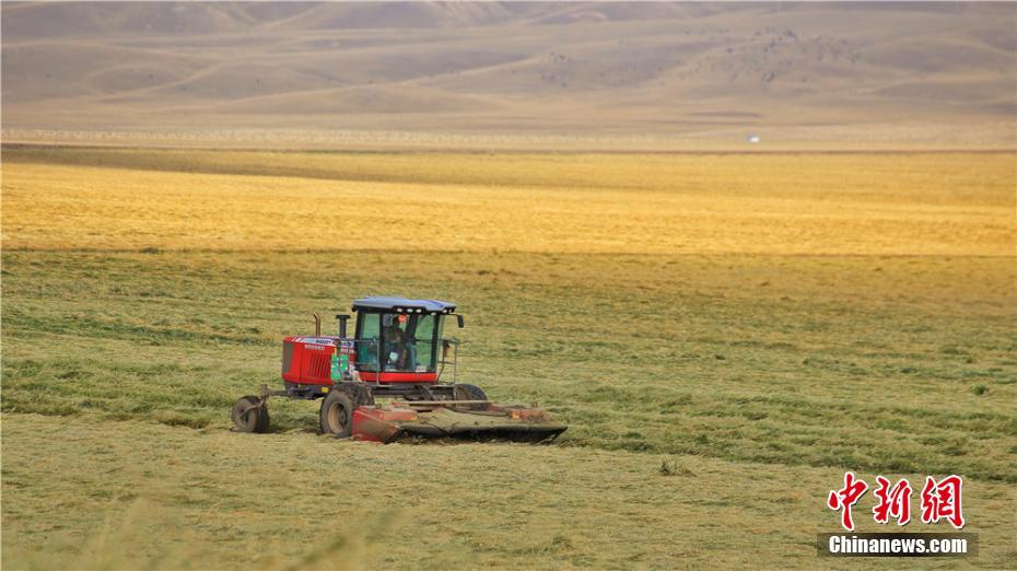 航拍祁连山下21万亩“铃铛麦”迎丰收