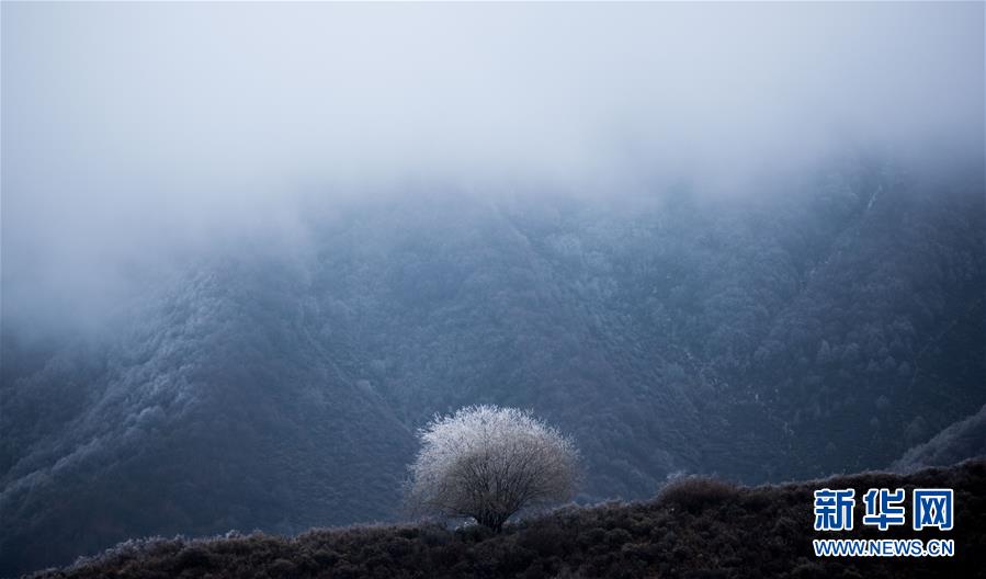 这是10月24日拍摄的群加国家森林公园一景。 近日,受低温天气影响,青海省湟中县境内的群加国家森林公园出现别样风景。 新华社记者 吴刚摄