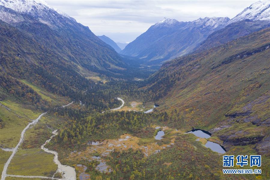 派墨公路沿线秋色(10月24日无人机拍摄)。 正在修建的派墨农村公路起点位于西藏林芝市米林县派镇,将通往墨脱县解放大桥,公路沿线的深秋景色优美如画。 新华社记者 普布扎西摄