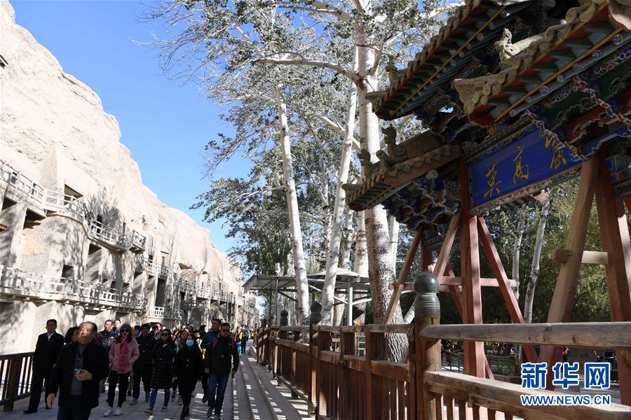 10月23日,游客在敦煌莫高窟参观游览。新华社记者 马宁 摄