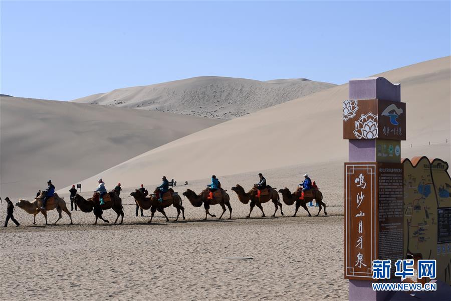 10月25日,游客在敦煌鸣沙山月牙泉景区参观游览。新华社记者 马宁 摄