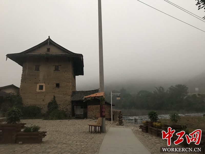 清晨云水谣古镇里的土楼,风景别具一格。 中工网记者郭丽娟摄