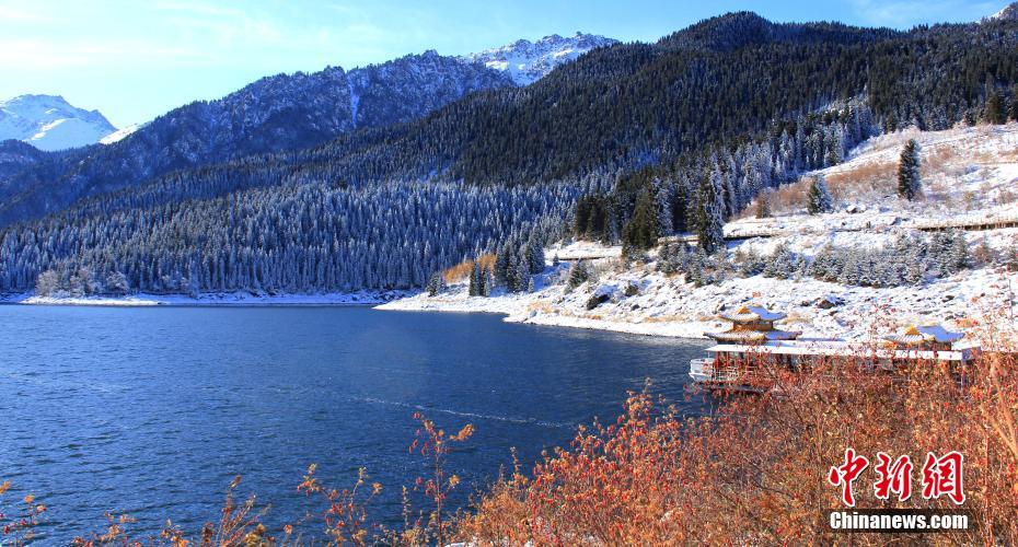 11月9日,新疆天山天池景区立冬后的首场降雪,吸引大批游客前来景区赏雪景。雪后初睛,大地焕然一新,湖畔的秋色初落初冬的白雪令来自国内外的游人徜徉在初冬的雪景里,如痴如醉。甄梅 摄