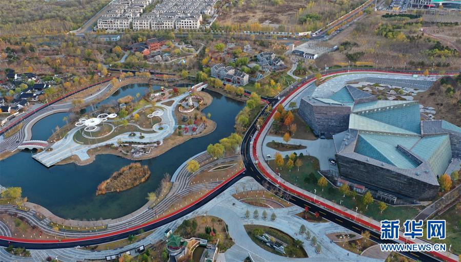 这是11月11日无人机拍摄的河北省唐山市南湖景区。