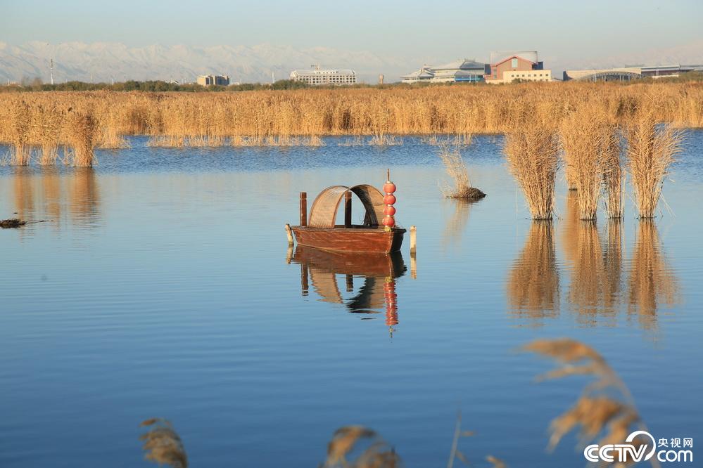11月13日,雪后的甘肃张掖国家湿地公园里金黄芦苇、湖中游荡的天鹅、远处的祁连雪峰构成冬日旖旎风光。