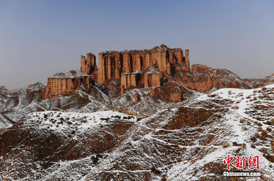 11月中旬,一场降雪后的甘肃张掖七彩丹霞、冰沟丹霞分外妖娆。张掖丹霞地质公园地处祁连山北麓,是中国丹霞地貌发育最大最好、地貌造型最丰富的地区之—,是中国彩色丹霞和窗棂状宫殿式丹霞的典型代表,具有很高的科考和旅游观赏价值。中新社记者 杨艳敏 摄