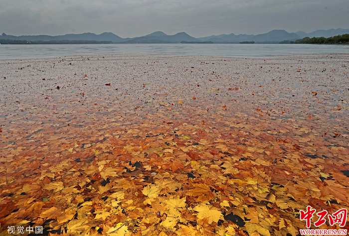 杭州一夜北风 西湖落叶纷纷增添浓浓秋色