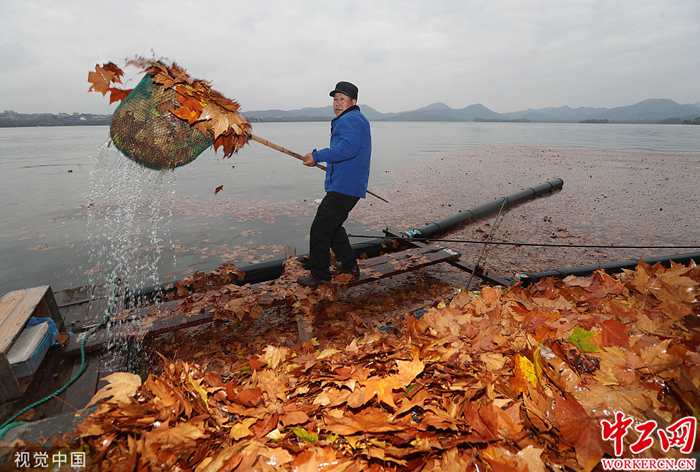 杭州一夜北风 西湖落叶纷纷增添浓浓秋色