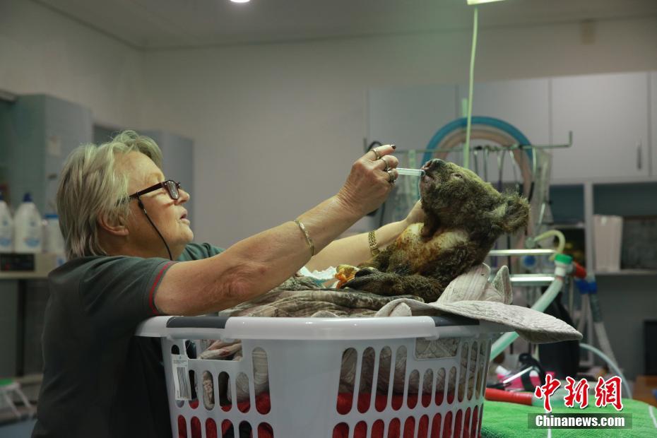 11月19日,在世界上唯一的考拉医院——澳大利亚麦考瑞港(Port Macquarie)考拉医院,志愿者救治被山火烧伤的考拉。由于近期澳大利亚东部不断蔓延的山林大火,这些澳大利亚“国宝”也横遭涂炭。中新社记者 陶社兰 摄