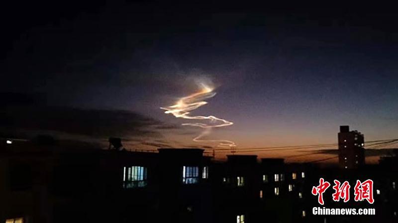 张掖高台现七彩朝霞宛如丝绸飘浮天际