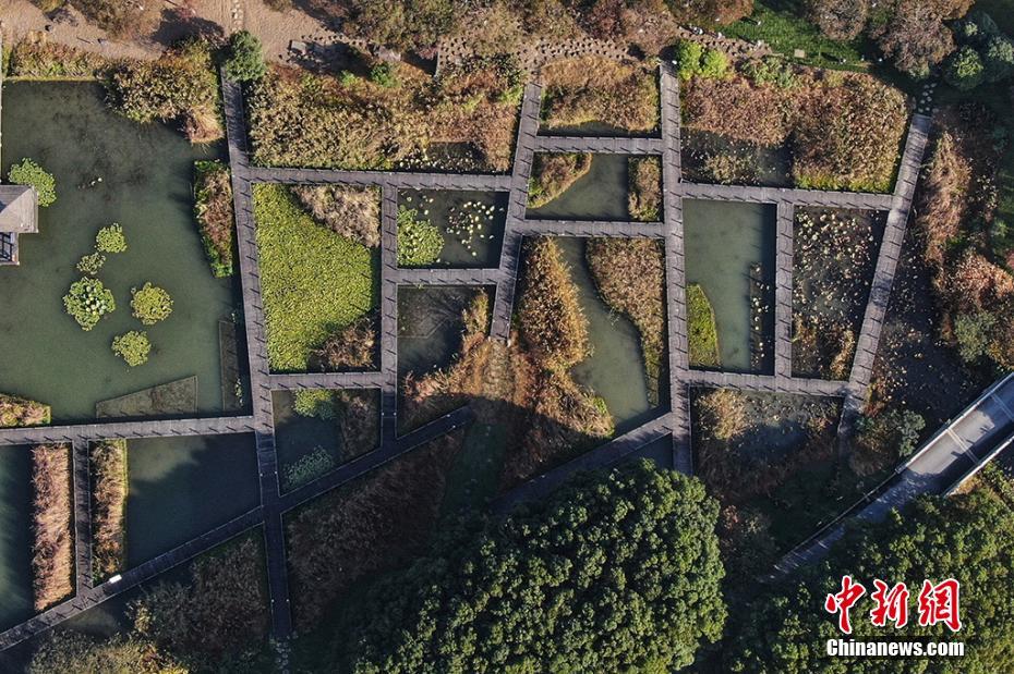 近日,航拍江苏昆山花桥经济开发区辖区内的天福国家湿地公园,色彩斑斓,景色秀美,构成了一幅美丽的冬日画卷。泱波 摄