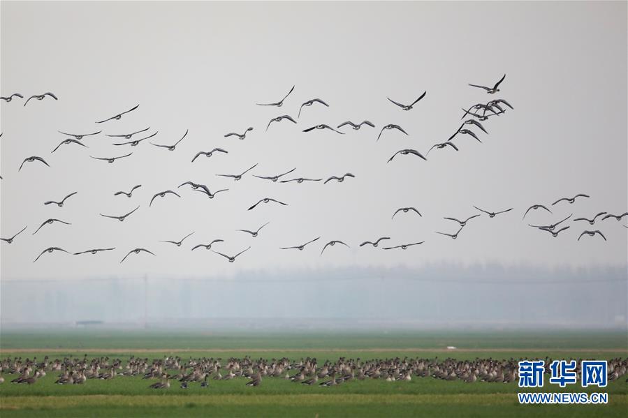 黄河湿地群雁来临