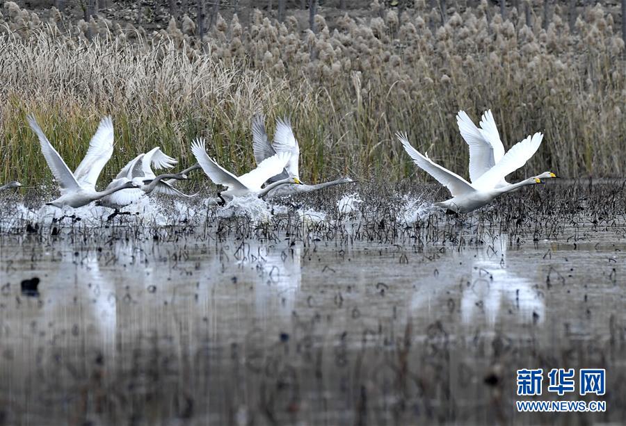 11月21日在济南龙湖湿地拍摄的天鹅。新华社记者 张汝锋 摄