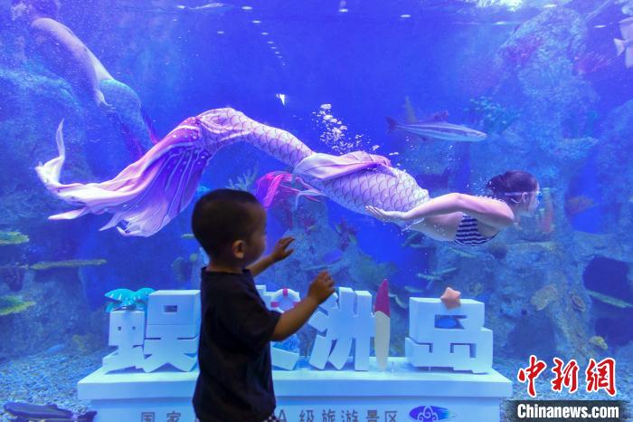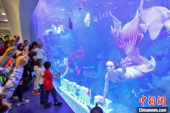 “海洋之眼”水族箱亮相三亚机场 “美人鱼”迎八方来客